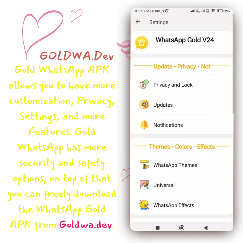 Gold WhatsApp is Best Tool Developed to Enhance your WhatsApp Experience and Enrich with full customization Features. Download Gold WhatsApp App from the Gold WhatsApp Site - GoldWA.CC